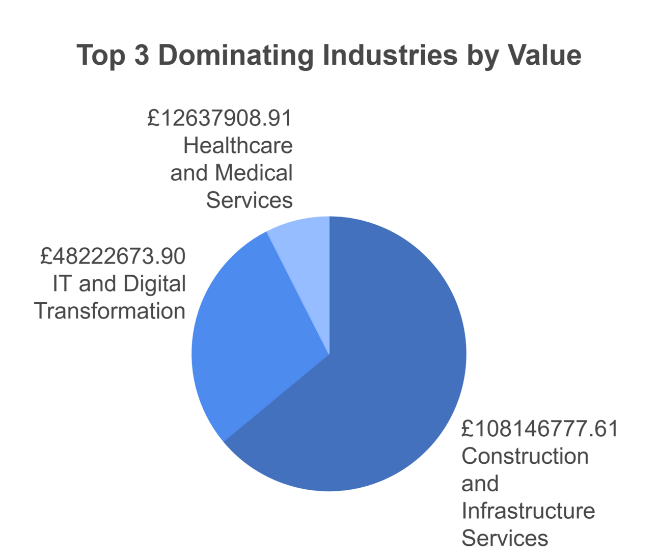 IT and digital transformation follows with £48.2M across 67 contracts, reflecting continued public sector modernization. Healthcare maintains steady procurement at £12.6M with emphasis on equipment and service delivery improvements. Notable trend: increasing integration of digital solutions across traditional sectors.
