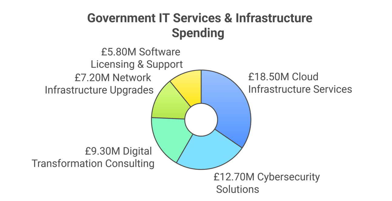 Supplier Concentration: The top 5 suppliers (Accenture, IBM, Capgemini, Deloitte, and BAE Systems Applied Intelligence) received 63% of today's IT contract value, raising concerns about market concentration.