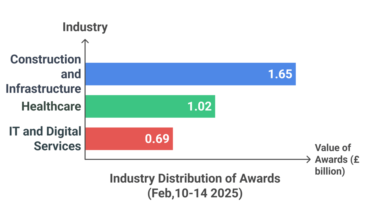 Overview: The five-day period saw 1,177 contracts awarded with a total value of £4.04 billion. Activity peaked on February 13th at £2 billion, with the lowest activity on February 10th at £175 million.